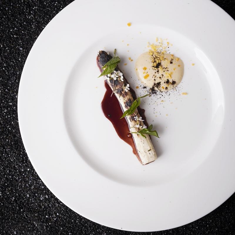 - Put the peeled asparagus on the grill until he has perfect consistence, then season with salt, brown butter and the lemoncest.