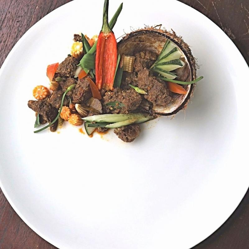 Heat up the cooking oil in a saucepan Add the blended ingredients cook for 5 minutes until it turns brown. Add the blended chili paste, tamarind juice and dark coconut sugar. Cook until the oil separates. Next add the fresh beef water and simmer on a low heat until dry. Once dried, add the coconut milk and water and simmer again on a low heat until dry and the oil separates.