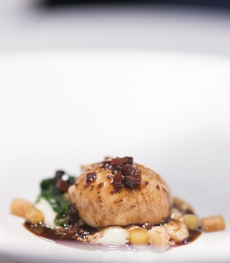 - Use a ring mold, spread buratta inside mold on cold plate.
