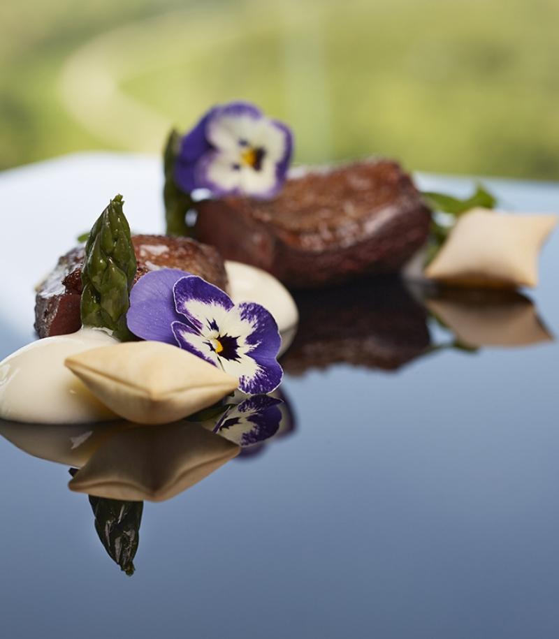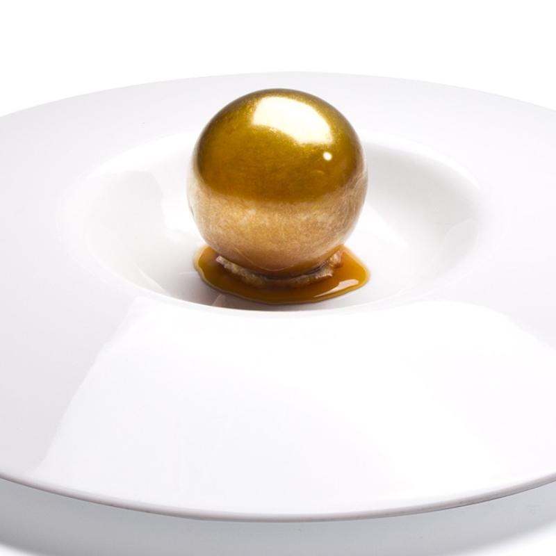 Cut little pieces of caramel and melt in a microwave; stretch and fold to glaze, making sure not to burn oneself. Make little balls and blow them as if they were glass. Set aside.
