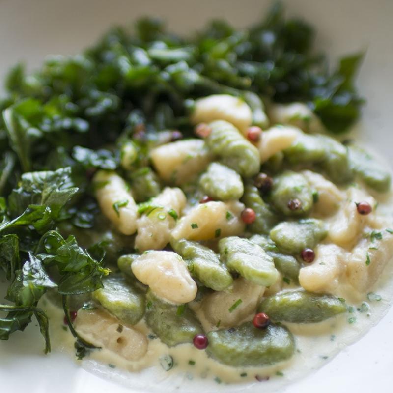 - In a small mixer add all dry ingredients. With dough hook on low slowly stream in egg and ricotta mixture. Mix until a firm ball is formed. Add flour or water as needed. For green dough, blanch arugula and puree in with the egg and ricotta mixture.