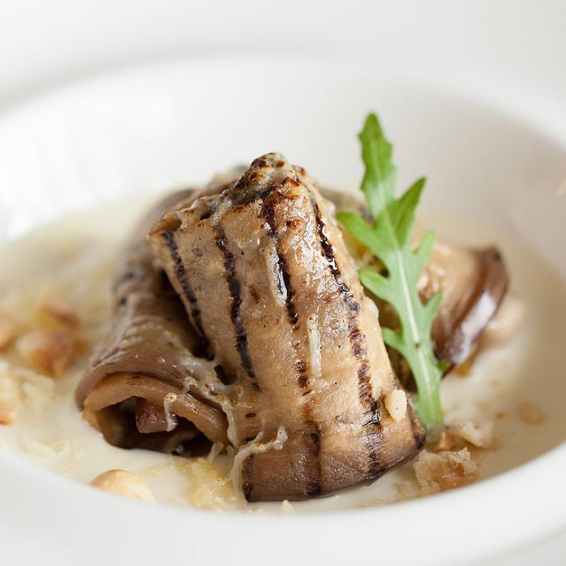 Charred aubergine, Jerusalem artichoke veloute, winter chanterelles, parmesan, chestnuts