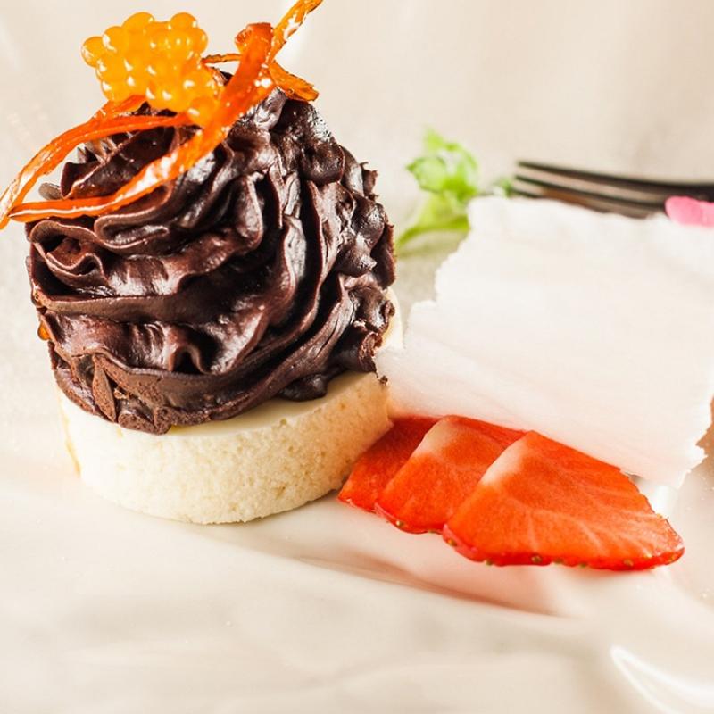 Cut the chocolate into small pieces and melt it in a double boiler. Boil the cream, milk and vanilla. Once it boils, add the agar and cook for some minutes. Mix the egg yolks and the sugar and add it to the cream mixture. Add the melted chocolate as well and mix very well together. Pour in a bowl and let it rest in the fridge over night.
