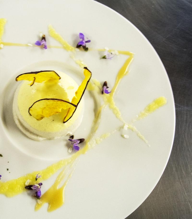 Spread a layer of creamy coconut half a centimetre high and position the other ingredients to taste