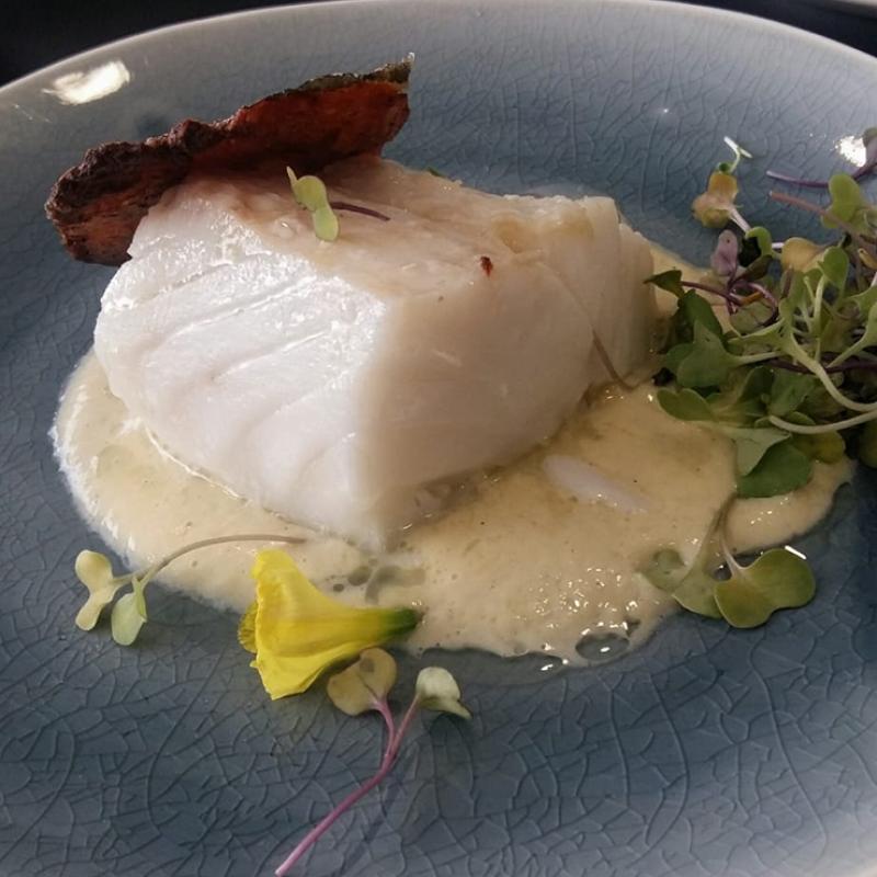 - This dish is assembled from a green onion cream base, with the cod in the middle and topped off with the crunchy romescu.