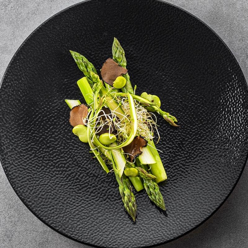 - Spread asparagus evenly on the plate, top up with some of the broad beans.