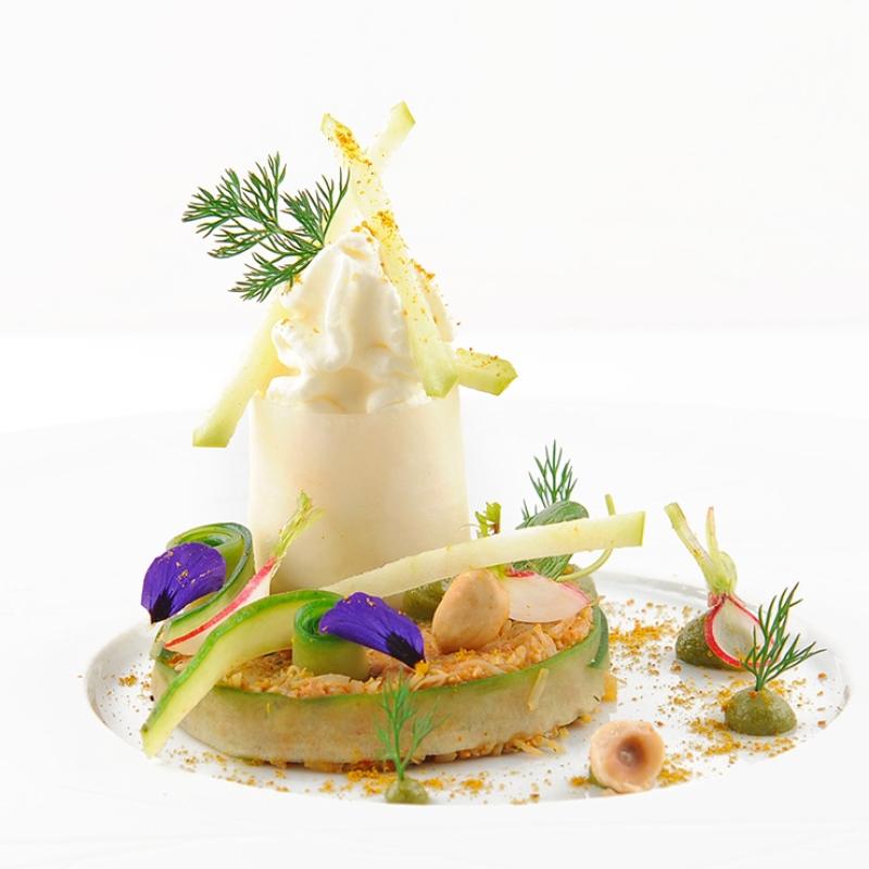 Curried crab with avocado, radish and green apple