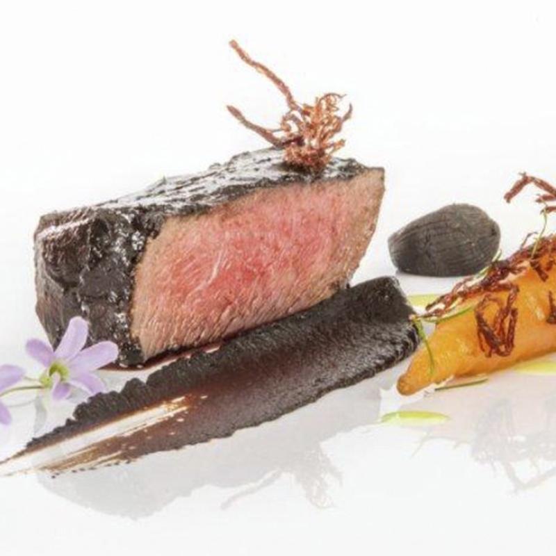 Deer in black garlic, pine-imbued carrots and crunchy fibres