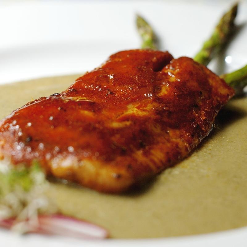 Swivelled fish is a coastal technique. It uses the elements provided by nature: creating a fire using the wood from the region and grilling the fish over it. Thus, we make the most of everything around us. Typically, the fish is grilled whole - split open in a butterfly shape - and seasoned before being put on a 'zaranda' . This grill lends the dish its name as when turning the fish over to see how well the two sides are done, we are swivelling it. If you have an oven at home, you can do the same. It is just like roasting meat. The fish can also be put in the oven whole or in fillets. The most important thing is that the fish is fresh. Red sauce to marinade the fish 3 tomatoes 1 'guajillo' chilli (seedless and without stalk) 1 small clove garlic ¼ onion Place on heat. Mill and season with: Salt to taste, Pinch of cumin, Pinch of oregano.