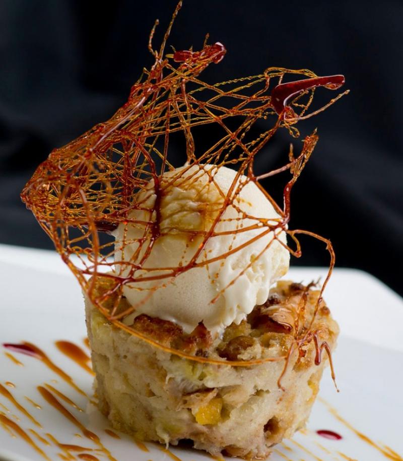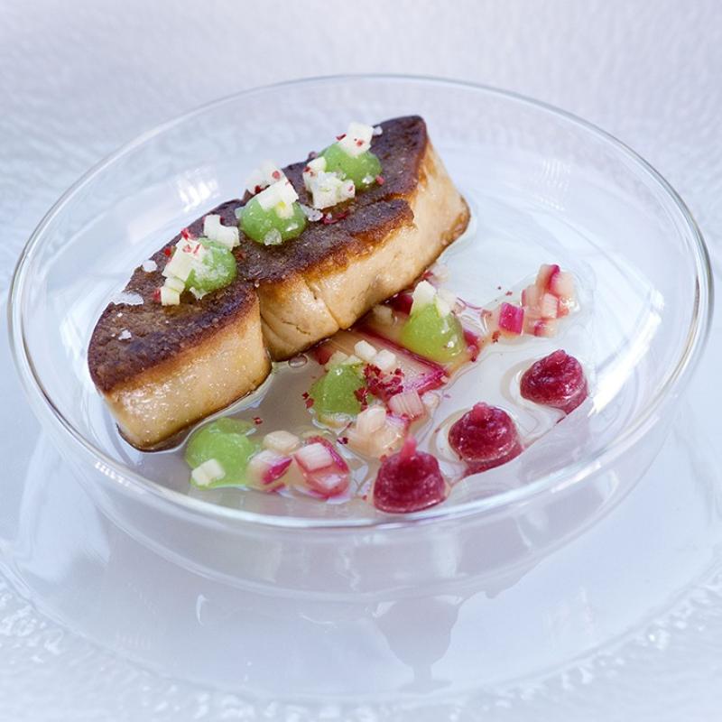 Fried escalope of duck liver on rhubarb apple and ginger