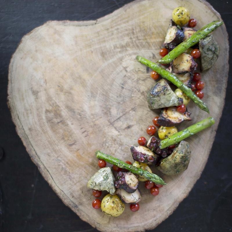 Fried octopus with vegetables and fennel