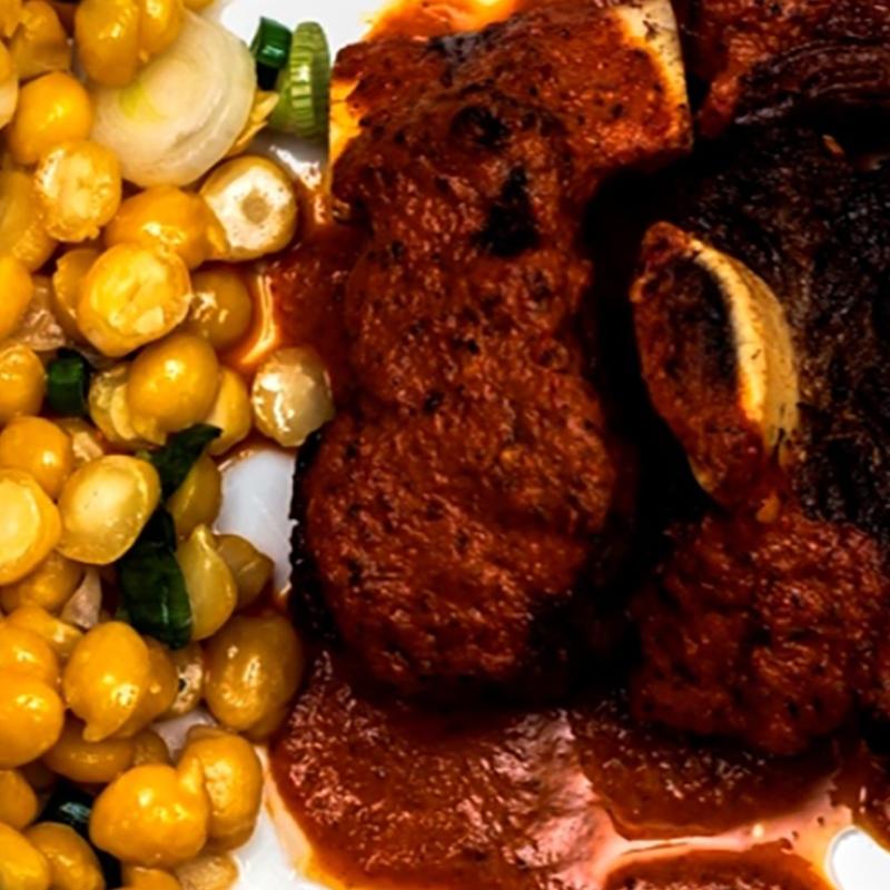 - Serve the ribs with the pepper sauce and accompanied by the sautéed chickpeas and onion.