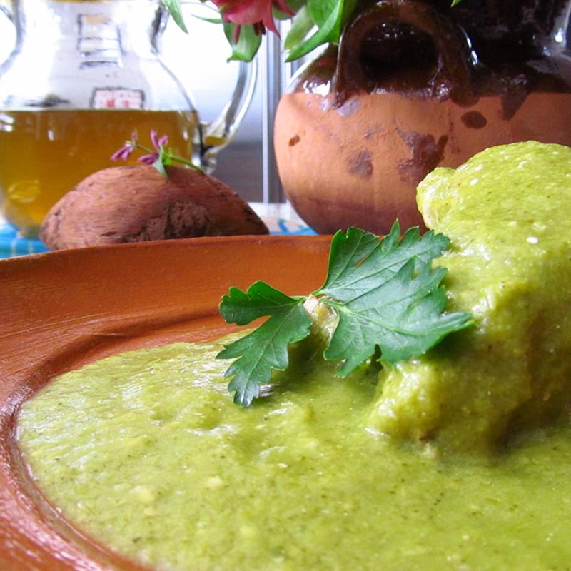 - Blend the other 2 sprigs of parsley and epazote with half a cup of the same broth.