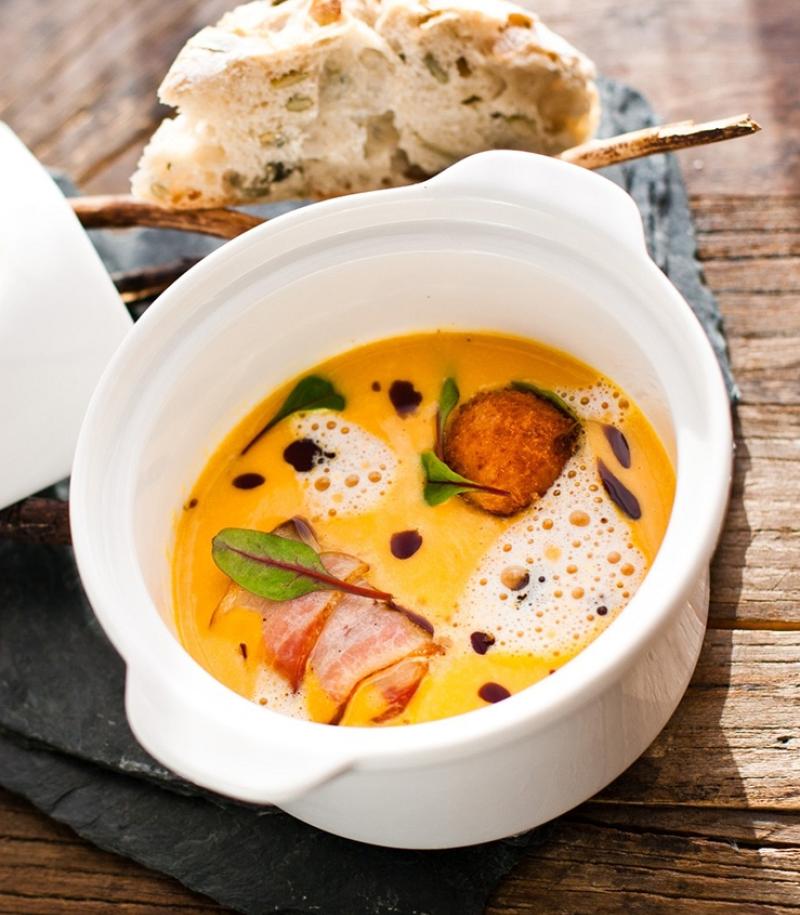 - Once the mix passes the test fry the balls until golden brown serve with Beetroot and sumac Tahini sauce, garnish with a deep fried rosemary sprig.
