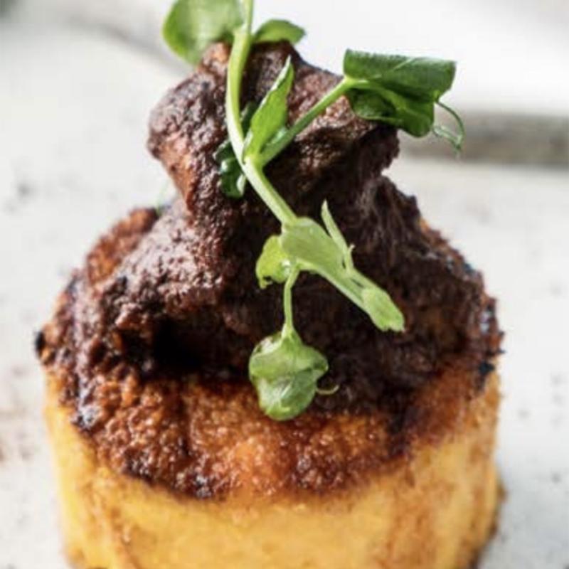 - Put the three cups of beef stock on to boil; add in the polenta on a medium heat. Add in butter and season (try using chepil).