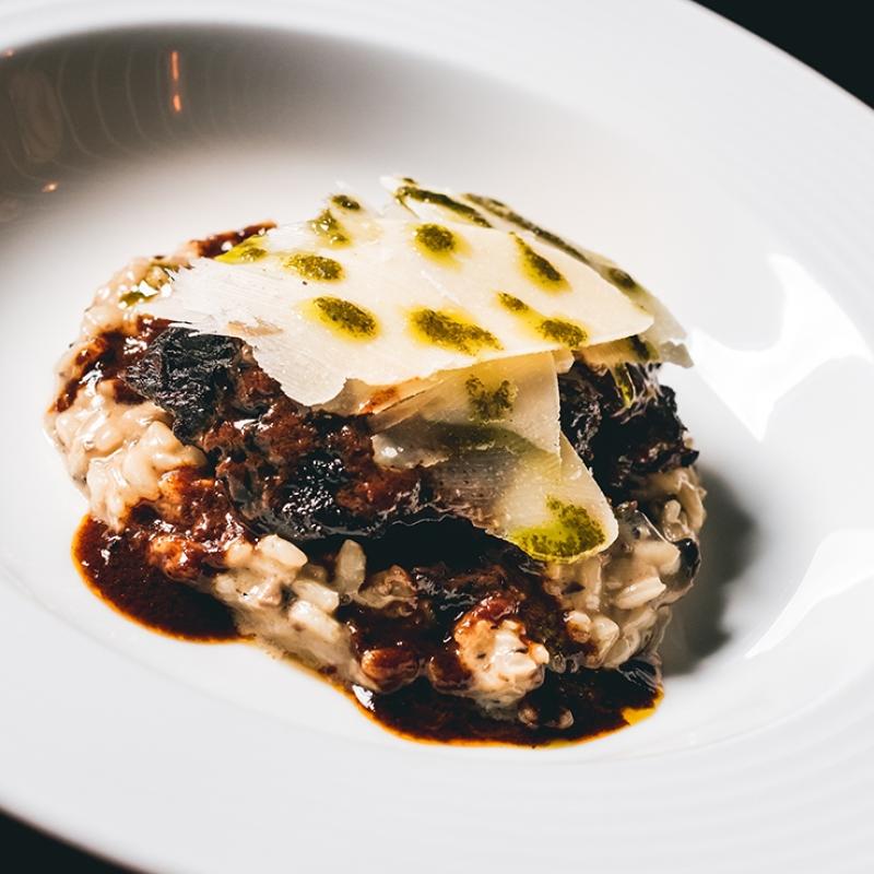 - Place 3 spoonfuls of risotto in a gourmet deep dish.