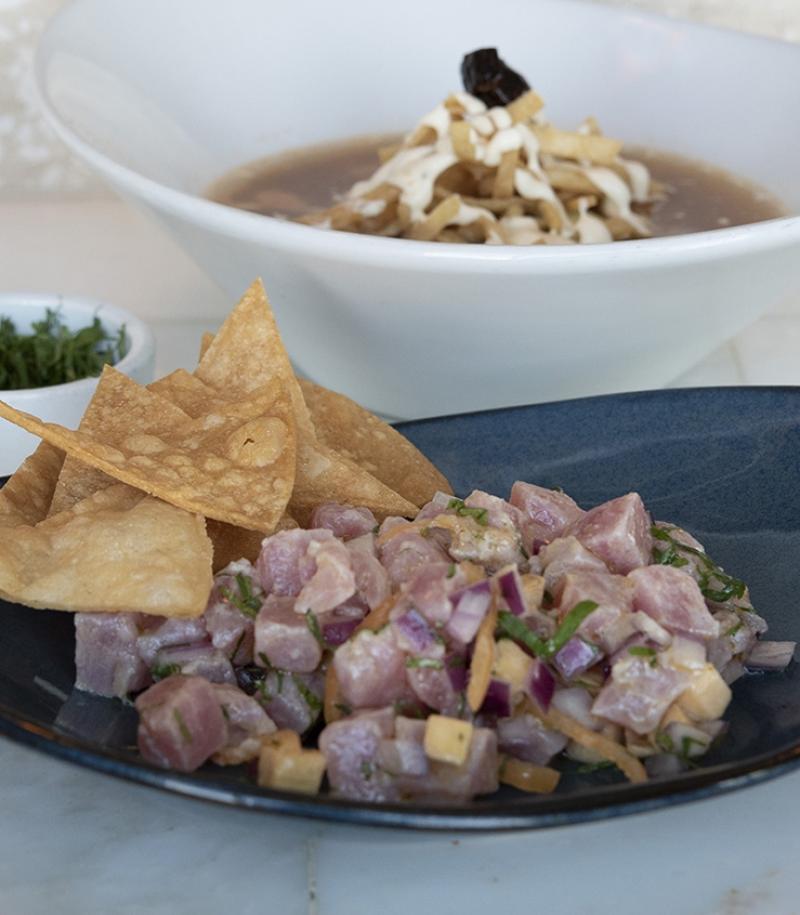 Cut the apricots in brunoise. Add a spoonful of olive oil to the lemon and the remainder of the lemon. Put in a vacuum bag and set aside.