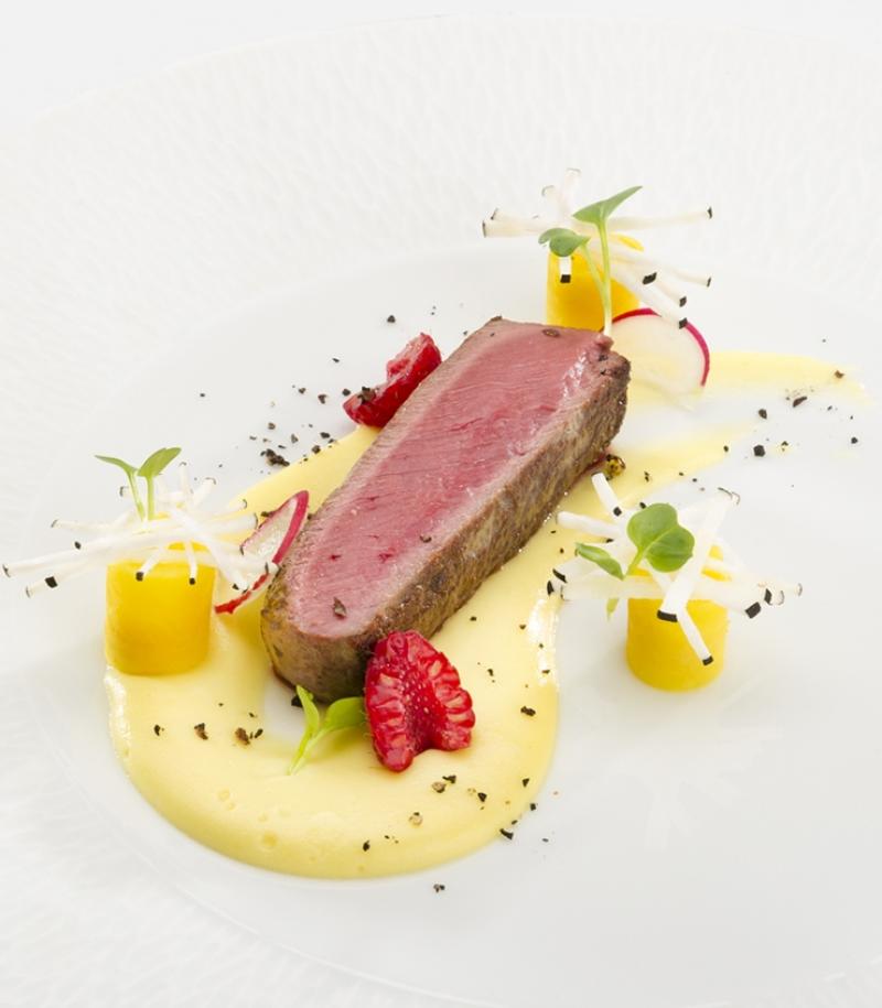 Reduce the rose hip juice with the grated yellow lemon, then, add the freeze-dried whites. Assemble everything in the blender, making use of a bag of small meringues; bake for 8 hours in the oven at 80º.