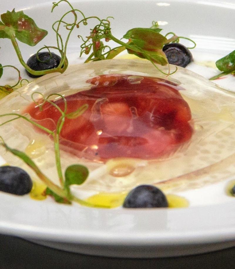 Confit the cod in olive oil for 8 minutes at 80ºC.