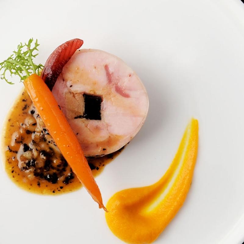 Cut the carrots in brunoise, dice the pistachios and truffle, add to the filling; add salt, pepper and Armagnac.