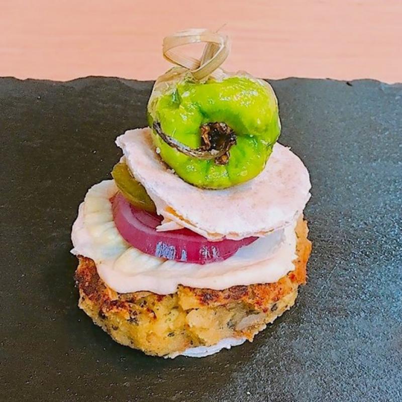 Mini-falafel, pita bread, baba ghanoush, pickles