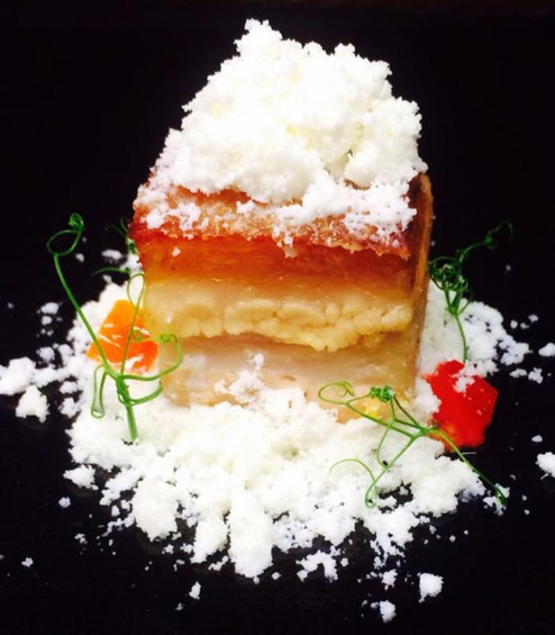 Octopus cooked in its own juices, with tomato, avocado and cuttlefish chips