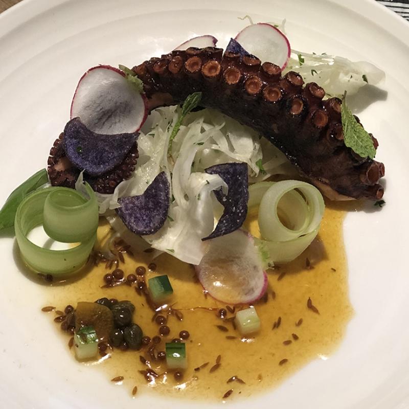 - Fry octopus and then dress it.
