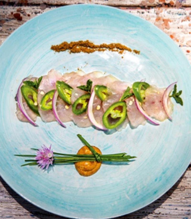 Clean the duck breast, crush all the spices and add the salt and sugar. Marinate the duck breast, put to the vacuum bag, and marinate in the bag 6 days skin down.
