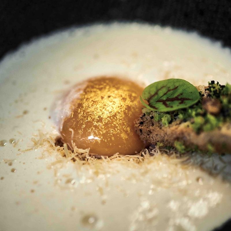 Ouef parfait on a straw nest, accompanied by bread with flowers