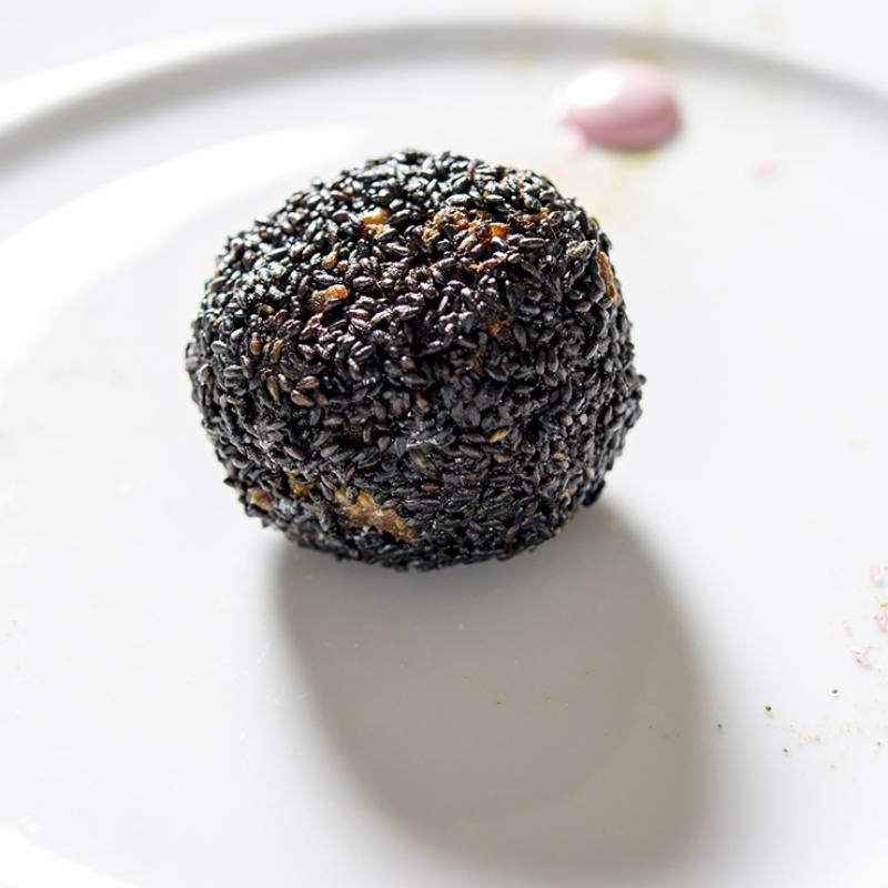 When all the ingredients are cool put them togethrer and make polpette (like meatballs). Then out them in rice flour,eggs and finish them in black sesam. then fry them in hot oil a few min.