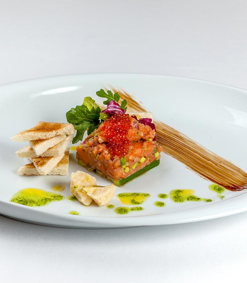 An entirely fresh dish without need of accompaniment. But, should you wish to have something with it, how about some tasty strips of smoked salmon