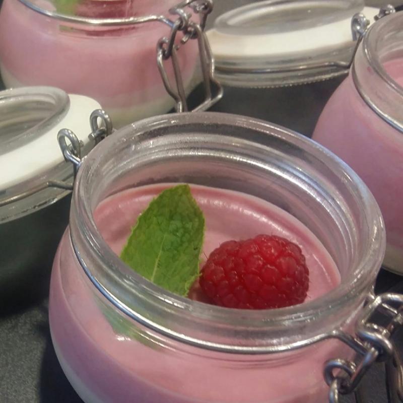 - Start by hydrating the gelatine sheets in cold water for 10 minutes. Put the raspberry pulp, cream, milk and sugar into a bowl and mash for a few seconds to make a smooth mixture.