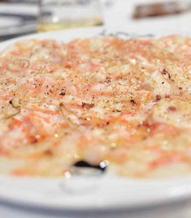 Carpaccio of red shrimp, lard and Limoncello vinaigrette