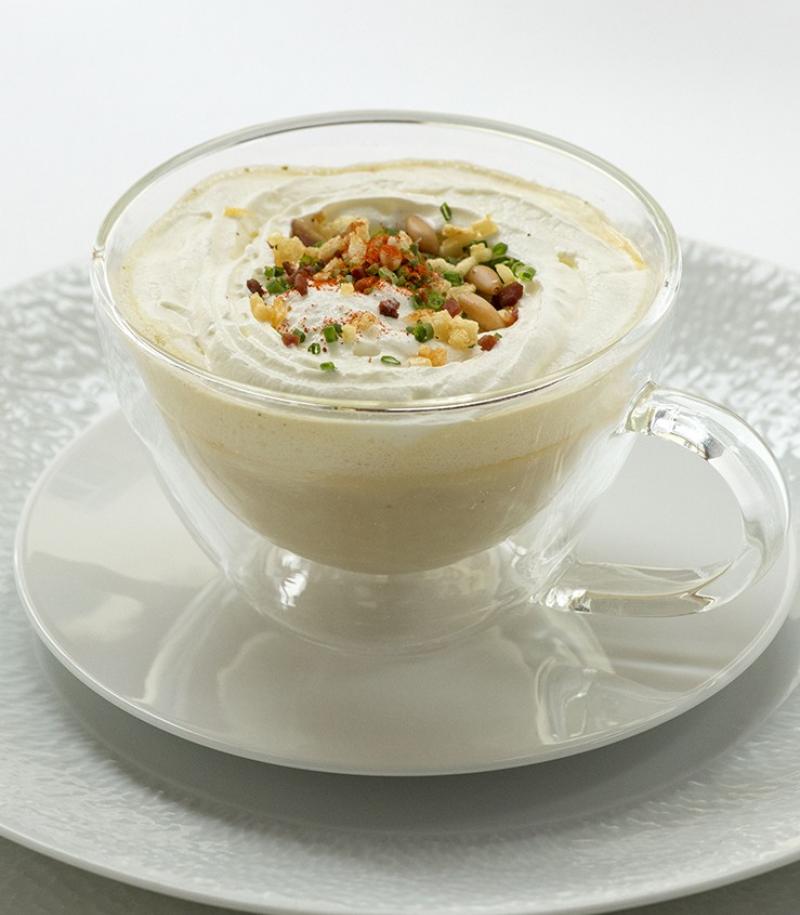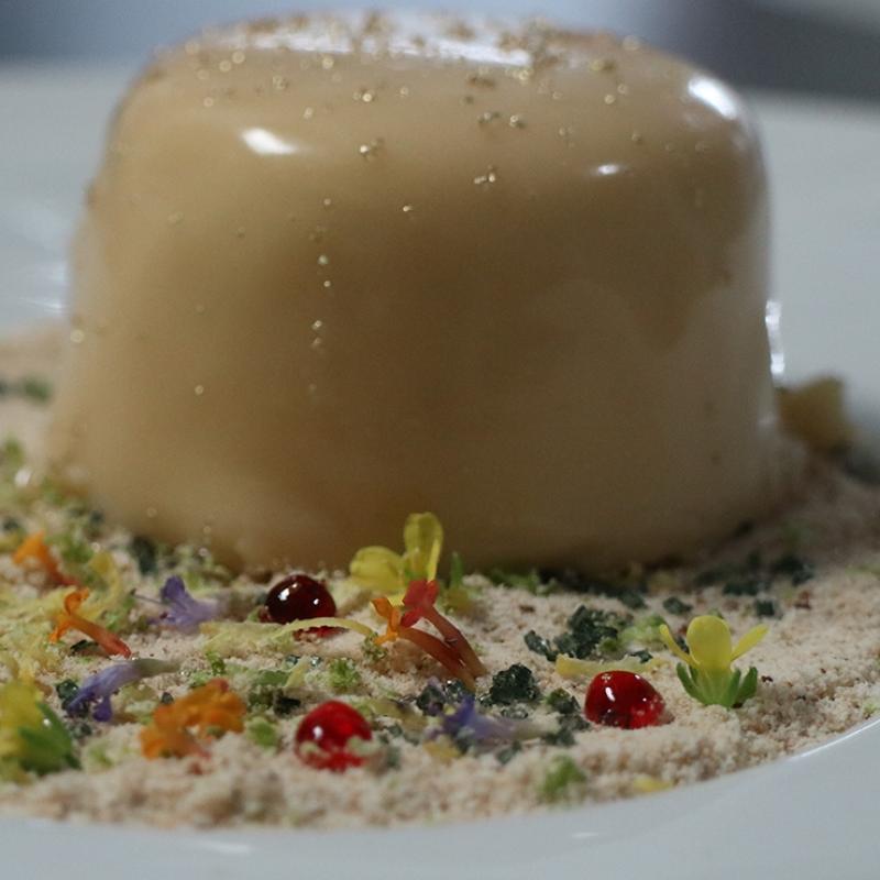 - Once the cream has been fully incorporated into the smooth mass, then the rice pudding mousse is ready. Put it into the freezer in half-sphere moulds (approx. 4.5 cm diameter).