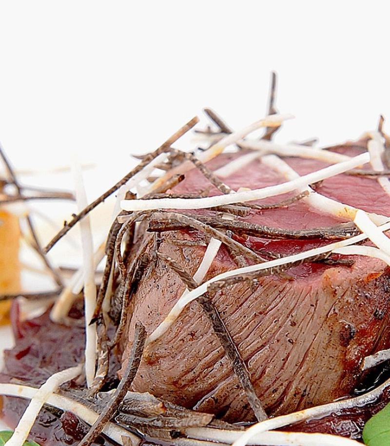 Marinade the sepia in the spices oil (tarragon, basil and parsley) and cut in thin strips.