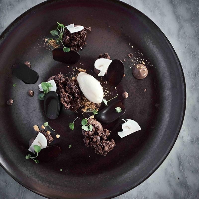 BLACK CHOCOLATE ONE-HANDED QUENELLES WITH PUFF PASTRY