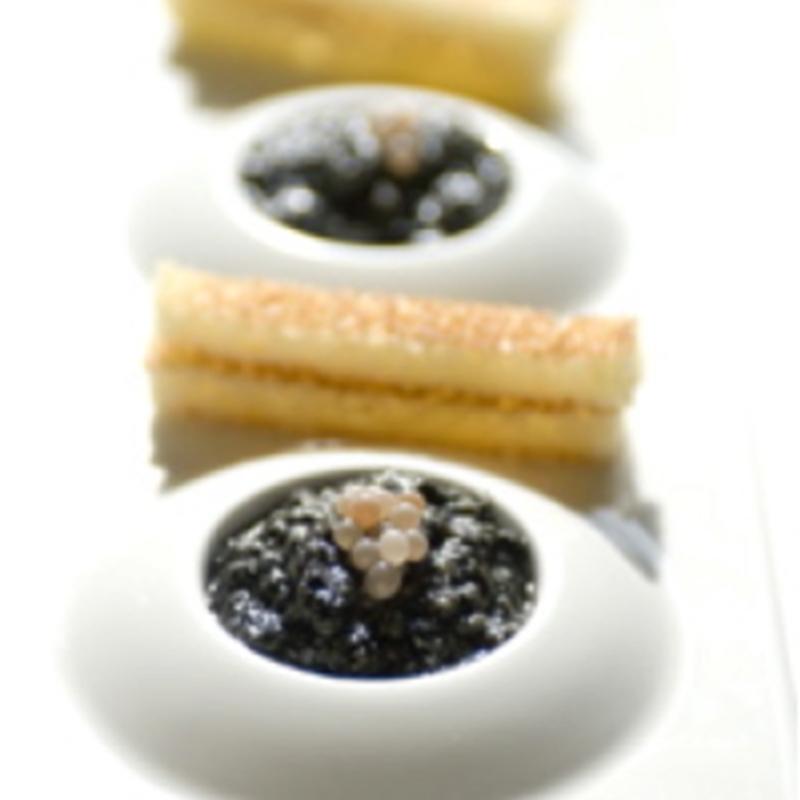 Russian-style caviare from the Dauphiné, Scrambled eggs with ink and snail eggs from Chatanay