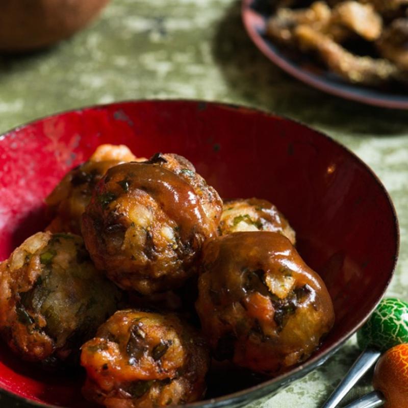 In a deep saute pan reheat the oil and gradually fry the bowls until golden brown.