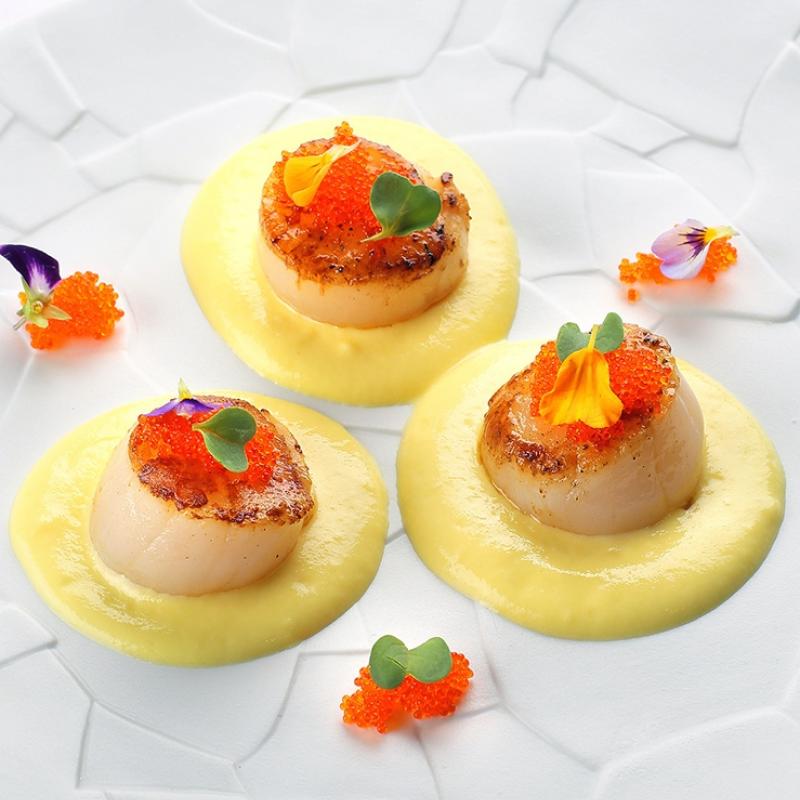 Scallops with curry, saffron and coconut