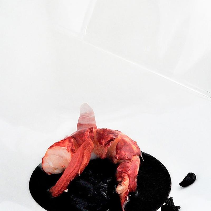 Make a lobster sauce with the shells; add in cuttlefish ink.