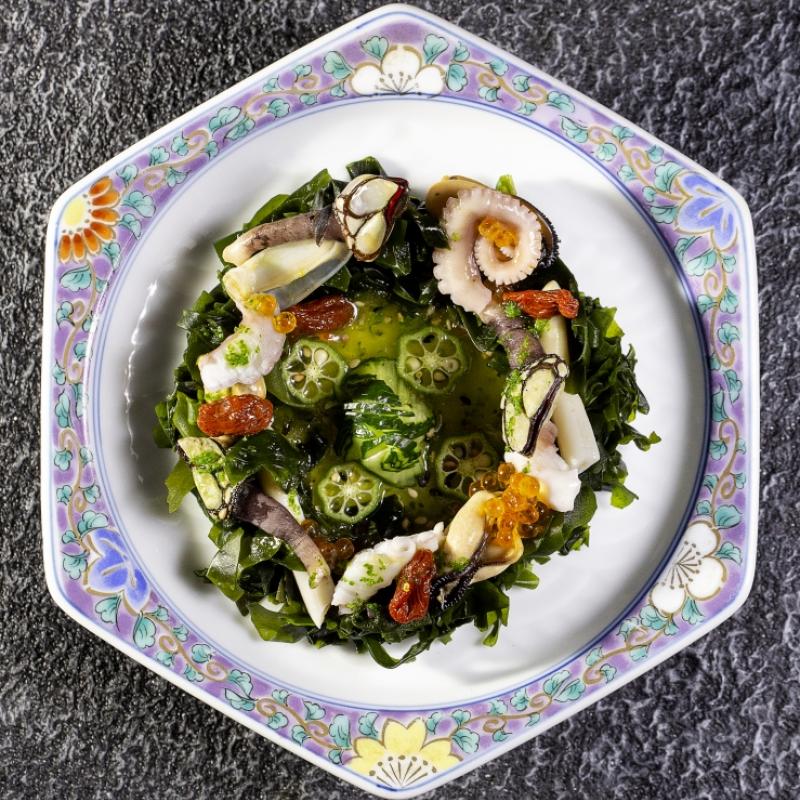 Sunomono (japanese seafood salad with cucumber vinaigrette)