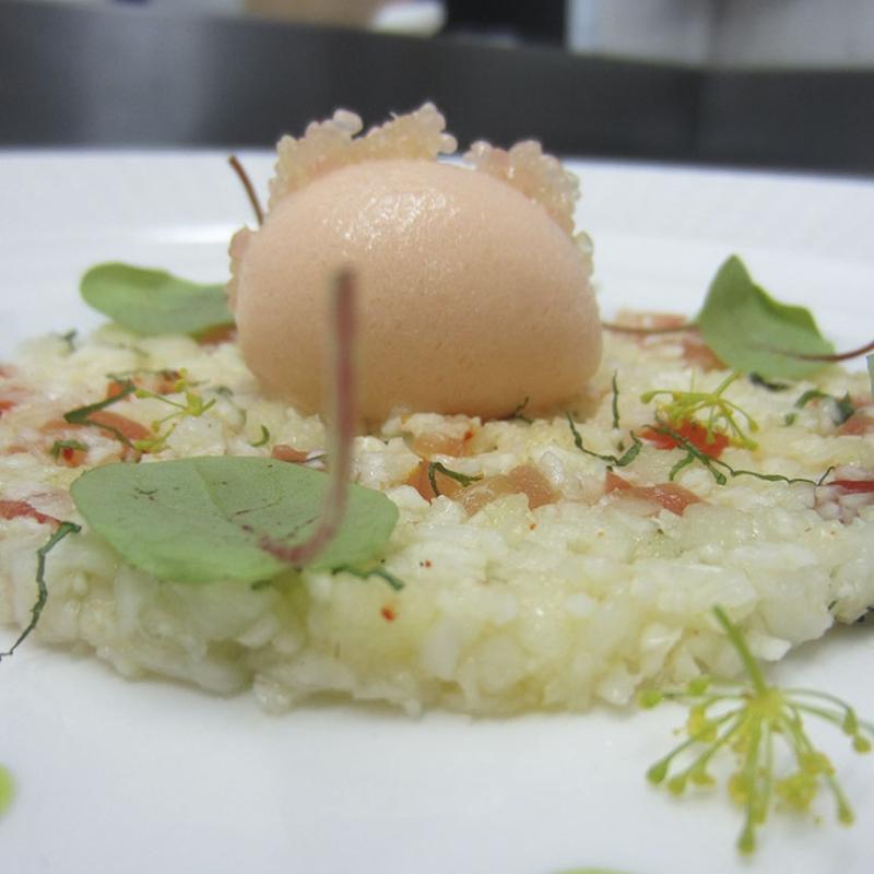 Tabbouleh with cauliflower, green mango, citrus caviare and melon sorbet