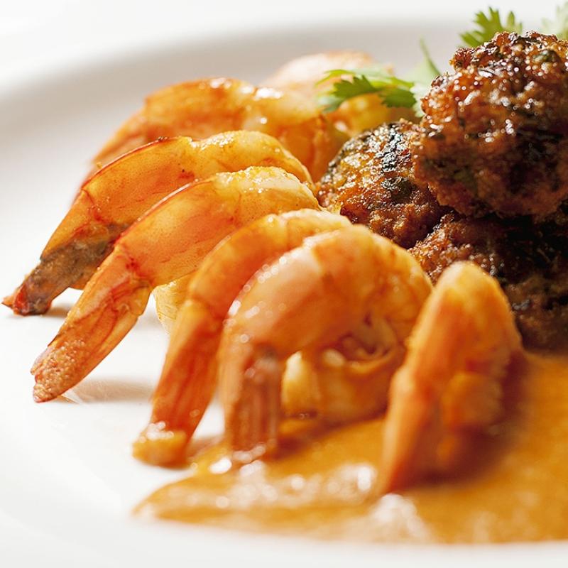 Finely chop the peeled prawns to make the meatballs. Add: 1/3 cup of diced onion, ¼ cup of diced coriander, Salt to taste, 1 whole egg, Make 2 cm diameter balls. Fry in a little oil.