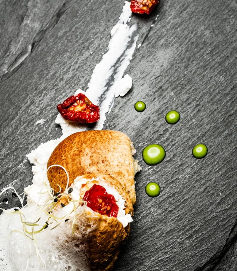 - Glaze the cherry tomatoes for 20 minutes at 155ºC, seasoning with salt and sugar.