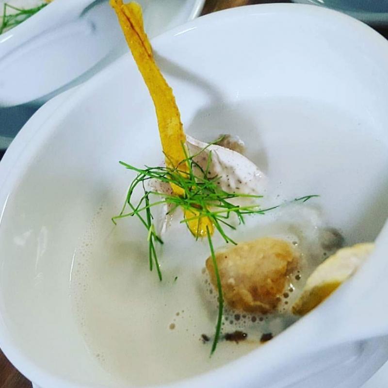 4. Peel and cut the yucca; boil, mash and shape into little balls. Add flour for consistency.