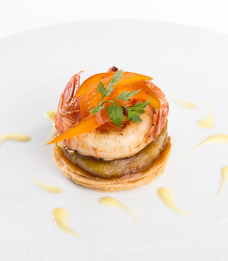 - For the fruit sauce: in 5 ml oil, sauté the diced vegetables, add in the puréed raspberries, then whisk in a mixer while adding in 40 ml extra virgin olive oil.