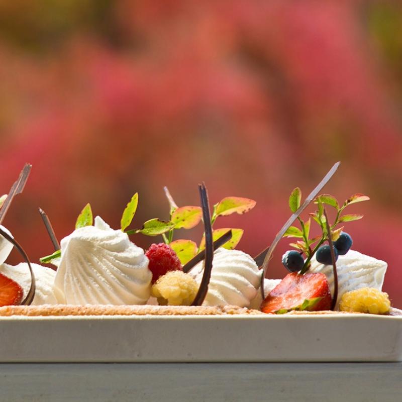 White chocolate mud cake with berryes