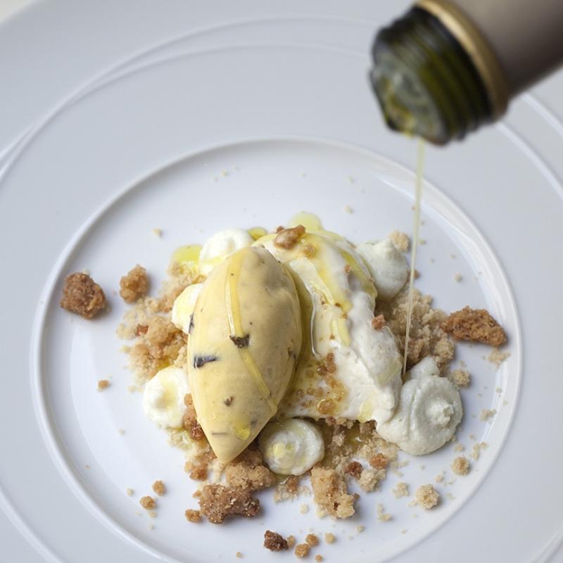 Mousse de chocolate blanco y aceite de oliva virgen extra