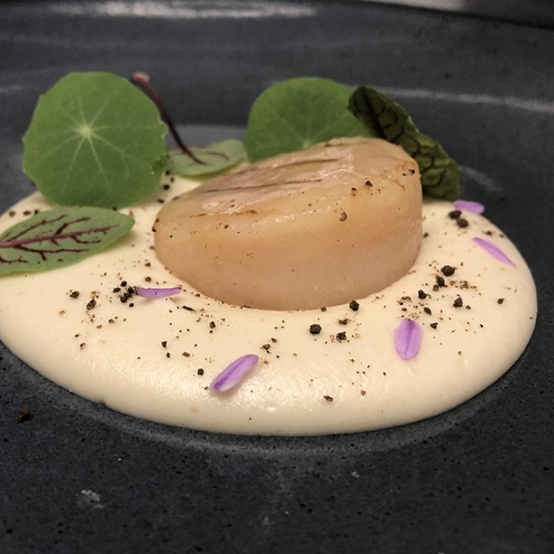 Callo de hacha en ajo blanco de chile piquin