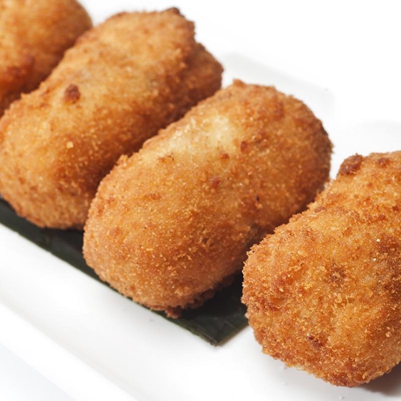 - Una vez que la masa esté fría, corta y moldea las croquetas, enharínalas, pásalas por huevo y pan rallado y fríelas en una sartén con aceite muy caliente.